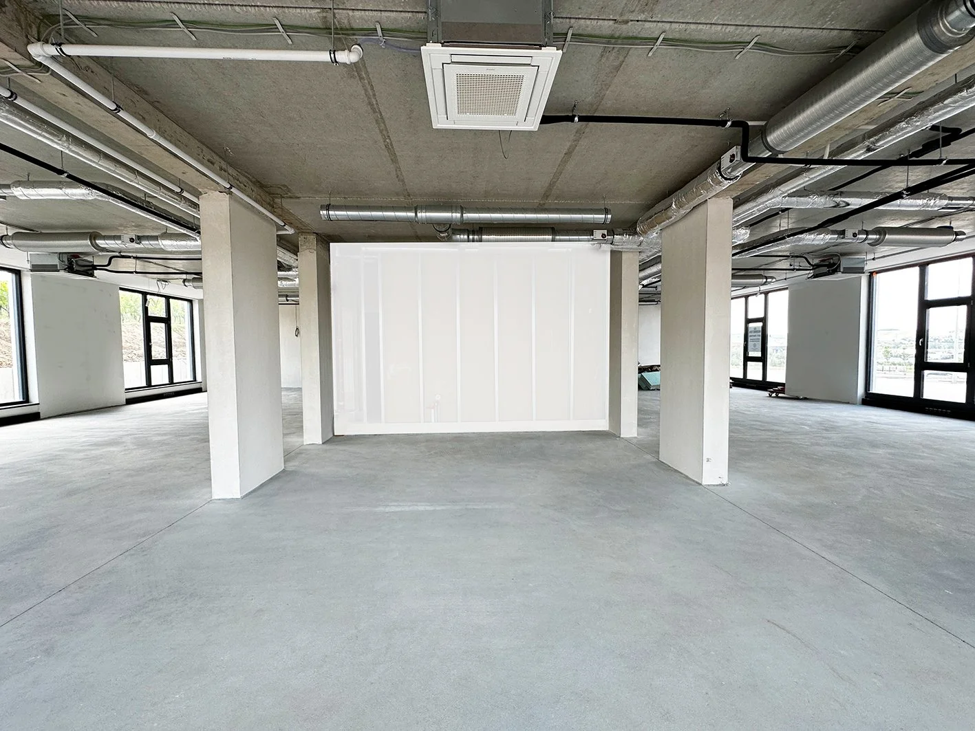 In einem modernen Bürogebäude mit bodentiefer Verglasung und einem durchdachten Raumkonzept entsteht eine einzigartige Atmosphäre: